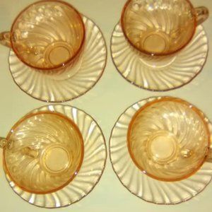 Set of Beautiful Swirl Glass Cups and Saucers ~ Set of 4 cups and 4 saucers. Great for Luncheons and Tea Parties.