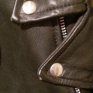 Putnam Leather Gold. Size 40. Quilted black lining. Excellent VINTAGE condition with typical leather wear that makes the jacket more unique!