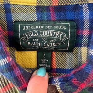VINTAGE * POLO COUNTRY RALPH LAUREN WESTERN SNAP PLAID FLANNEL MENS Sz: L
