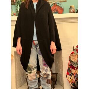 VINTAGE PORTOLANO BLACK SLEEVED CASHMERE WOOL CAPE CARDIGAN WRAP