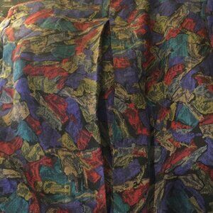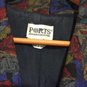 Vintage Ports International Midi Belted Dress, Lightweight Size L, Multicolor Print, 100% Wool, Lining, Shoulder Pads, Side Pockets, Back Open Pleat, Small Split, Closure Buttons, Belt Missing but it is in Good Condition, Soft Lightweight Wool Dress, Great Look, Great Fitting.