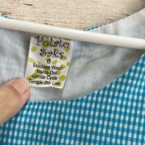 EXCELLENT CONDITION VINTAGE POTATO SAKS GINGHAM DRESS WITH APPLIQUÉD FLIP-FLOPS