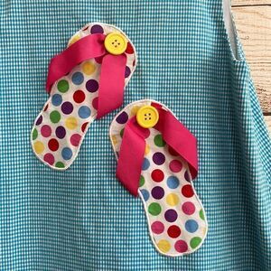 EXCELLENT CONDITION VINTAGE POTATO SAKS GINGHAM DRESS WITH APPLIQUÉD FLIP-FLOPS