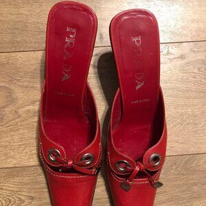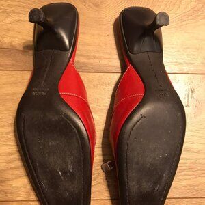 VINTAGE PRADA RED LEATHER SLIP ON PUMPS