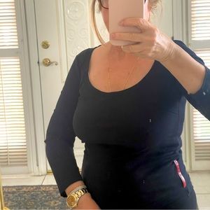 Beautiful gorgeous classy sexy top with 3/4 sleeves, I bought it and wore it a few times in the beginning and then forgot some 15 years, just found it in my daughter closet, fits me tightly I’m 158lb and 36C bra size