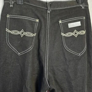 VINTAGE PS Gitano Jeans 14 Black Straight High Rise 44976 Embroidered Stitching
