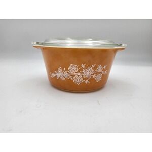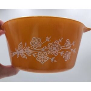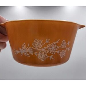 DESCRIPTION 1970s Pyrex casserole #473-B Size 1 liter The pattern is called Butterfly Gold It was produced between the years 1972-1981 This is a 2 piece set that comes with a lid.