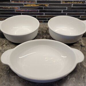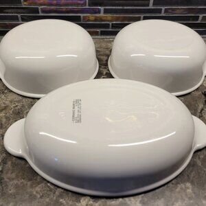 SET OF (3) PYREX GRAB IT BOWLS CORNING WARE VINTAGE 1970s ROUND OVAL GLASS LIDS P-14-B AND P-150-B, excellent clean condition from a smoke-free home. The lids and bowls have no cracks or chips; however, one of the lids is slightly cloudy and one of the handles has a small stain (see pictures). These would make an excellent addition to your vintage Grab Its collection.