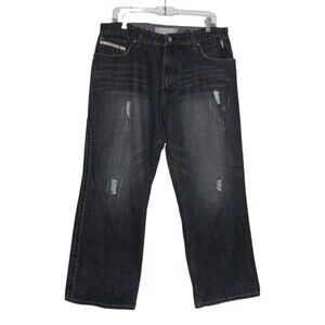 The Vintage Paco Distressed Straight Jeans for men in size 34x30. Loose fit. 100% cotton denim. Machine washable. 5-pocket design.Mid-rise. See pictures for complete description