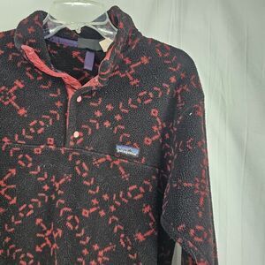 VINTAGE Patagonia Synchilla Jacket Mens Small Black Red Fleece Sweater Snap-T 94 Aztec Snow Snap T
