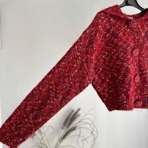 VINTAGE Paul Et Duffier Mohair Blend Crop Hoodie Cardigan Large