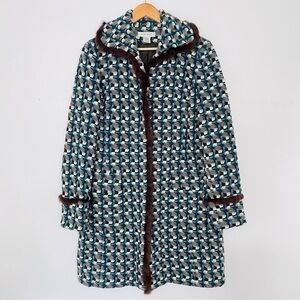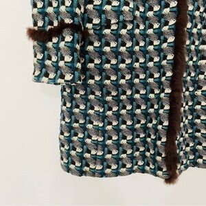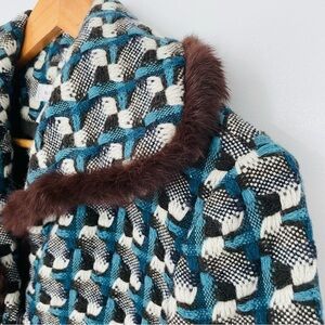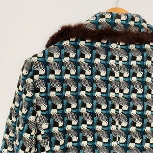 VINTAGE | Peacock Tweed Wool Rabbit Fur Trim Long Line Warm Collared Coat