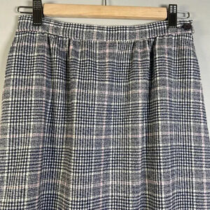 This vintage skirt is made in the United States and has a button closure. It is a size 6 and is designed to fit regular size women. The skirt is perfect for the winter and fall seasons, and it can be dry-cleaned only. With its academia, corporate siren, classic, and preppy themes, this skirt is an excellent addition to any wardrobe.