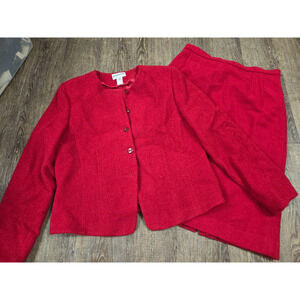 VINTAGE Pendleton Women's Virgin Wool Coat Jacket Skirt SET Red USA Size 14 L
