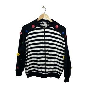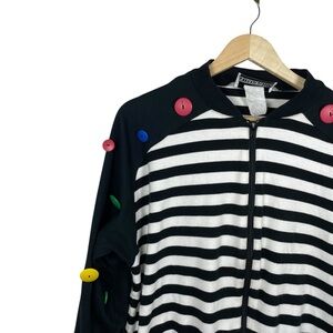 VINTAGE Peter Popovich Funky Striped Rainbow Button Full Zip Sweatshirt Size M