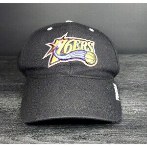 VINTAGE Philadelphia 76ers Hat Wool Black Back Cap 90s Y2K Sixers NBA Retro