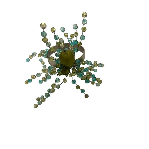 VINTAGE Pier One will enhance dining experiences with this set of eight beaded napkin rings. Featuring green and blue glass beads, these rings add elegance and color to table settings.