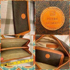 VINTAGE Pierre Balmain set! Purse, wallet and makeup bag. They are brown paisley print leather with tan handles trim. I collected each vintage piece separately. The purse and makeup bag have Balmain logo zip pulls and logo interior. The wallet doesn’t and could possibly be faux but I don’t know for sure. There is no crossbody strap. I took lots of photos so you can see the condition of each piece. The measurements are in the photos. LV vibes