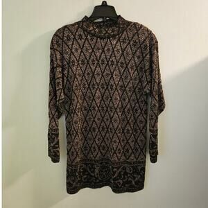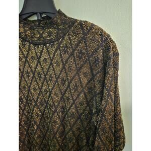 VINTAGE Pierre Cardin 70s or 80s Black & Gold Mock Neck Sweater Size Large