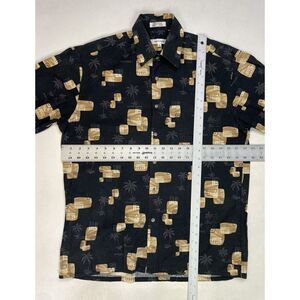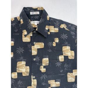 VINTAGE Pierre Cardin Hawaiian Shirt Men Medium Black Palm Trees Print