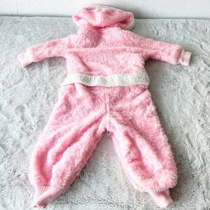 VINTAGE Pink Fuzzy Hooded Onesie with Teddy Bear