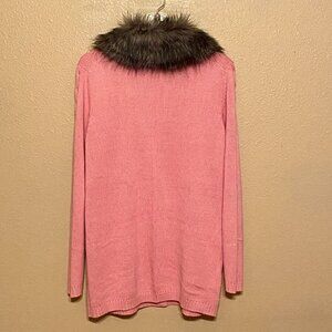 VINTAGE Pink Knit Sweater Cardigan Faux Fur Detachable Collar Approx Size M/L. This is a beautiful sweater with a fully detachable faux fur collar. If you don't feel like a fun fur collar there is a classic collar underneath.