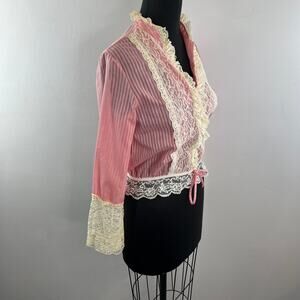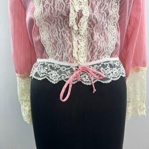 VINTAGE Pink Lace Blouse Ruffled Victorian Style Long Sleeve Top Size Medium