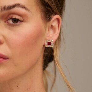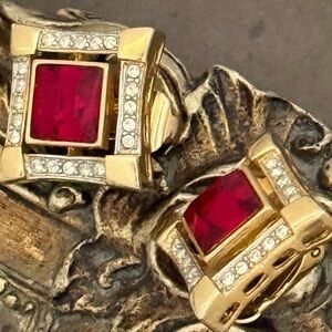 VINTAGE • Piscitelli Red Clip On Crystal Rhinestone Earrings