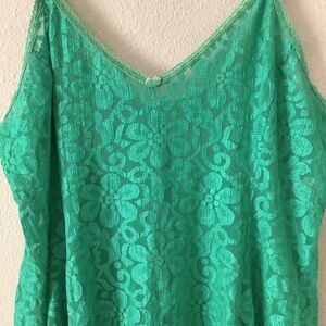 VINTAGE Plus Size Green Lace Chemise Sheer Slip Dress Lingerie Babydoll Nightie