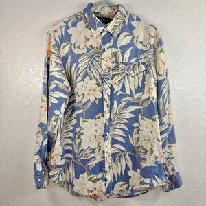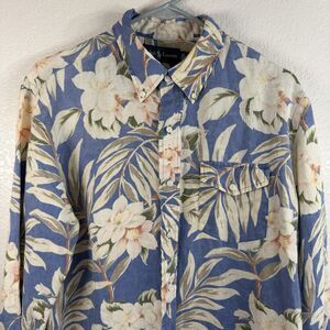 VINTAGE Polo Ralph Lauren Hawaiian Floral Shirt LARGE 100% Linen