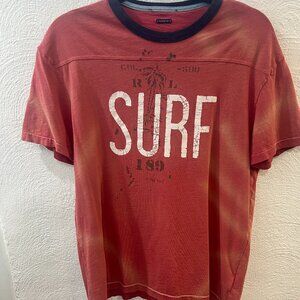VINTAGE * Polo Ralph Lauren Men's Red Faded Surf Graphic Print Crew-Neck T-Shirt