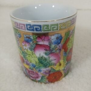 Vintage Porcelain Coffee Tea Mug Hand Painted Asian Floral Design