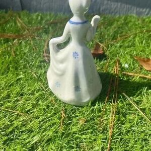 VINTAGE: Porcelain Dinner Bell - Lady Bell - Blue and White Bell - Dinner Bell