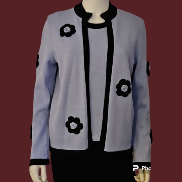 VINTAGE Powder Blue Floral Crochet Sweater Set