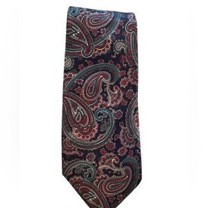 VINTAGE Preppy 1980s Etienne Aigner Silk Men's Navy Blue Paisley Necktie