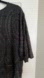 Black, sheer, short dolman sleeve blouse with sequins and beads. Beadings is gold, iridescent and black.
