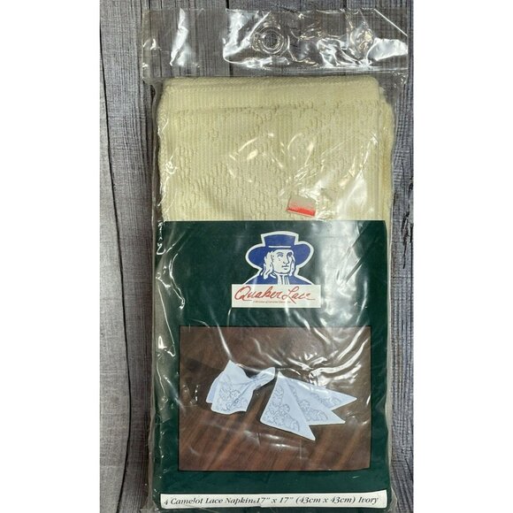 VINTAGE QUAKER CAMELOT LACE DINNER NAPKINS SET OF 4 17" X 17" Ivory NIP