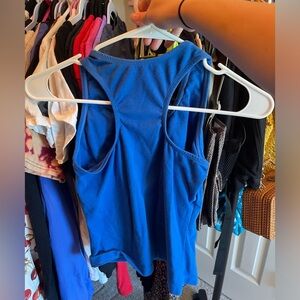 blinn community college, vintage workout racerback top with built in sports bra. size xs/s is just slightly cropped and a tight thick material.