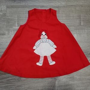 VINTAGE RAGGEDY ANN Applique Jumper Dress Red 1960s