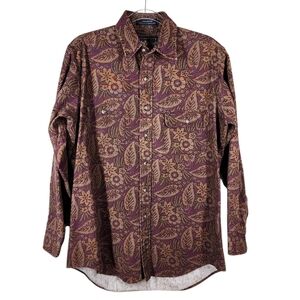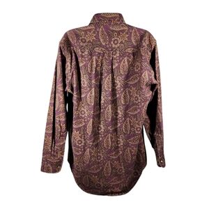 This Ralph Lauren shirt combines a rich blend of brown and purple hues with a casual button-down style, perfect for adding a touch of sophistication to your everyday wardrobe. The intricate paisley pattern and traditional collar offer a timeless elegance and style.