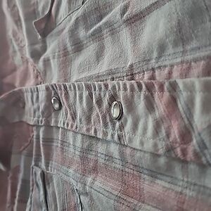 For over 125 years, H Bar C has offered cutting edge designs in casual and western wear clothing. The Company has been the go to brand for celebrities on stage. This item is in EUC. Chest measures up to 40". Overall length from shoulder to hem is 23" We recommend turning them inside out so that the pearl of the snaps/piping are protected. The shirts are made from tensel which is a product of a recycled eucalyptus tree.