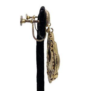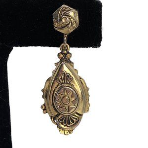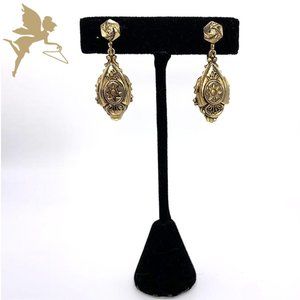 VINTAGE RARE 1940s MCM Gold Tone Etched Boho Drop Earrings