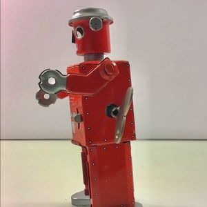 The 4 1/2 inch tall robot is in very good condition and working order. This is the original shipping box it was mailed in so there is some wear around the edges but otherwise in good condition. The wind up key is included.