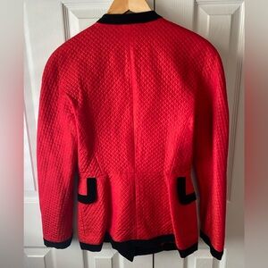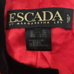 VINTAGE RARE! ESCADA Red Silk Blend Quilted Velvet Trim Embellish Jacket 34 (S)