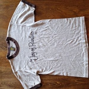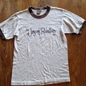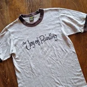 extremely rare 70's The Joy of Painting Bob Ross brown ringer t-shirt.