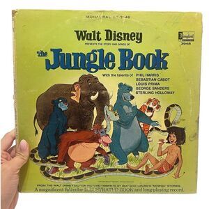 Relive the magic of Disney with this enchanting 1967 vinyl LP of "The Jungle Book" soundtrack by Walt Disney Productions. Perfect for children's parties, family gatherings, or a nostalgic evening at home, this record brings the beloved characters and timeless songs to life. Featuring an illustrated book with full-color pages, this Disneyland Records release is a treasure for any Disney fan. Enjoy the original soundtrack in English and let the music transport you to the jungle. Pre-owned, in good condition.