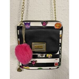 VINTAGE RARE Y2K Betsey Johnson Crossbody Purse Cartoonist Multi Function Pocket