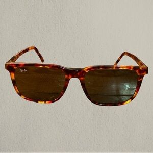 Ray-Ban logo on a raised metal insert on the exterior of of the left ear stem