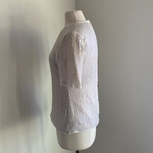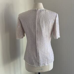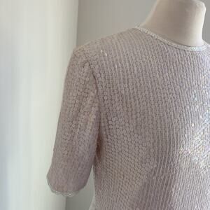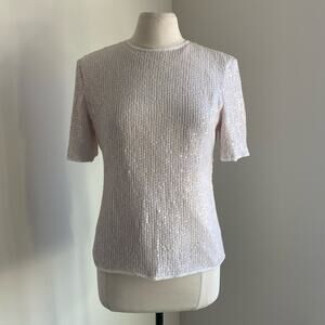 VINTAGE RAZZLE DAZZLE Sequin Tee Womens Sz Medium White Short Sleeve Glam