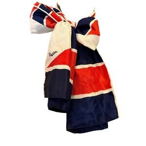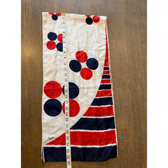 VINTAGE RENEE Neck Tie Scarf Wrap Red Blue 100% silk Italy Tomato Girl Summer